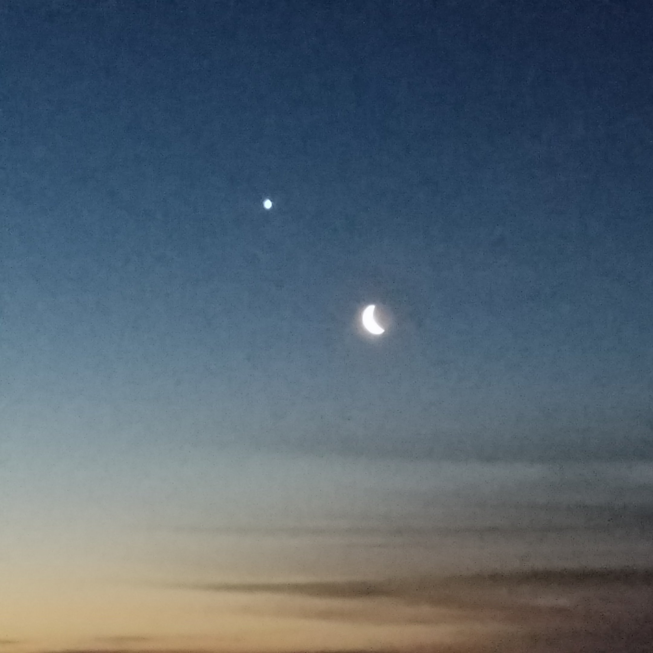 Yes! That is the moon and Venus rising before sunset. I snapped this with mu phone. I got some images with my camera too and I’m still processing.
